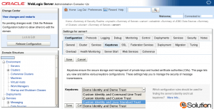 In setting up the SSL configuration for your WebLogic server you need to configure your Keystores. This is achieve typically by using WebLogic admin console, and navigating to: